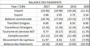 Le pays s’est retrouvé avec un besoin d’importation de plus de 20 milliards de dollars et des comptes extérieurs gelés. Une opportunité unique nous a tiré relativement d’affaires les transferts des émigrés à leurs familles qui ont chiffré en 2020 la somme globale de 8 milliards de dollars.